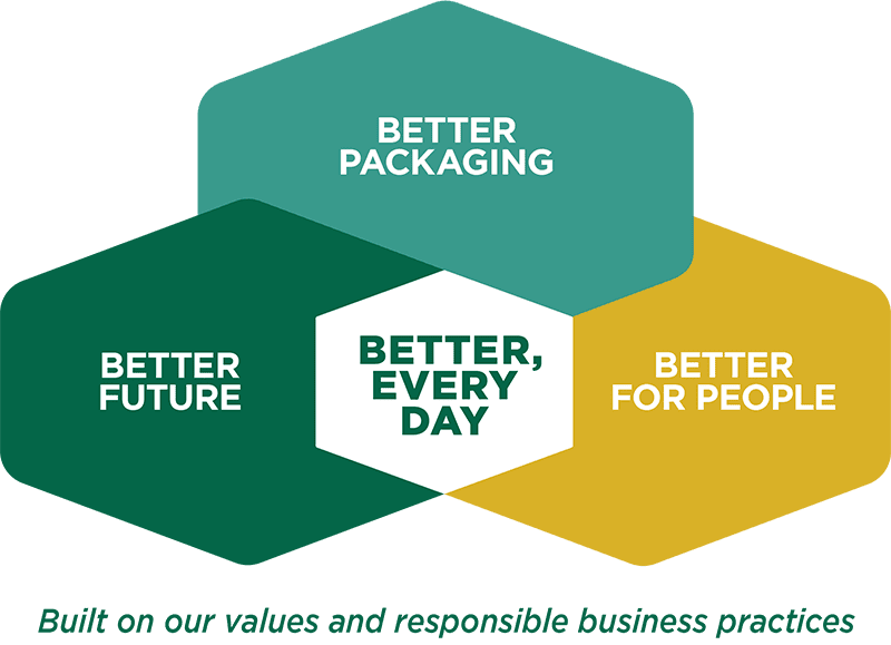 We do this by channeling our efforts into three strategic focus areas. We’re creating better packaging by designing with a circular economy in mind. We’re doing better for people by promoting safety, empowering employees, and engaging our communities. And we’re shaping a better future for our planet by reducing our climate impact and safeguarding ecosystems.